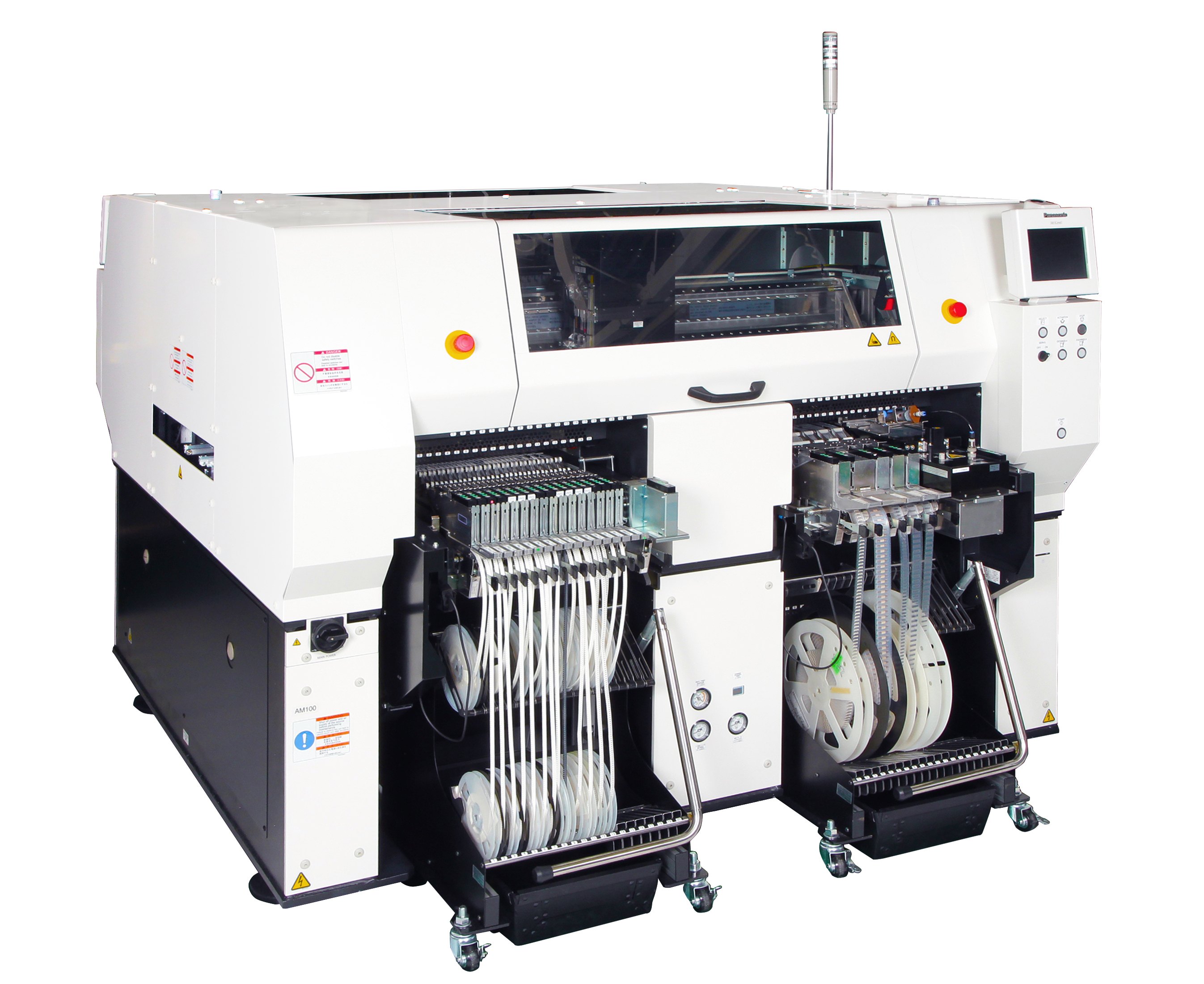 The single-head (single beam) of Panasonic's AM100 modular placement machine is able to place an impressive component array including: 0402 mm to 120 x 90 x 2 8mm, odd-shaped components, large connectors, as well as advanced packaging types e.g.