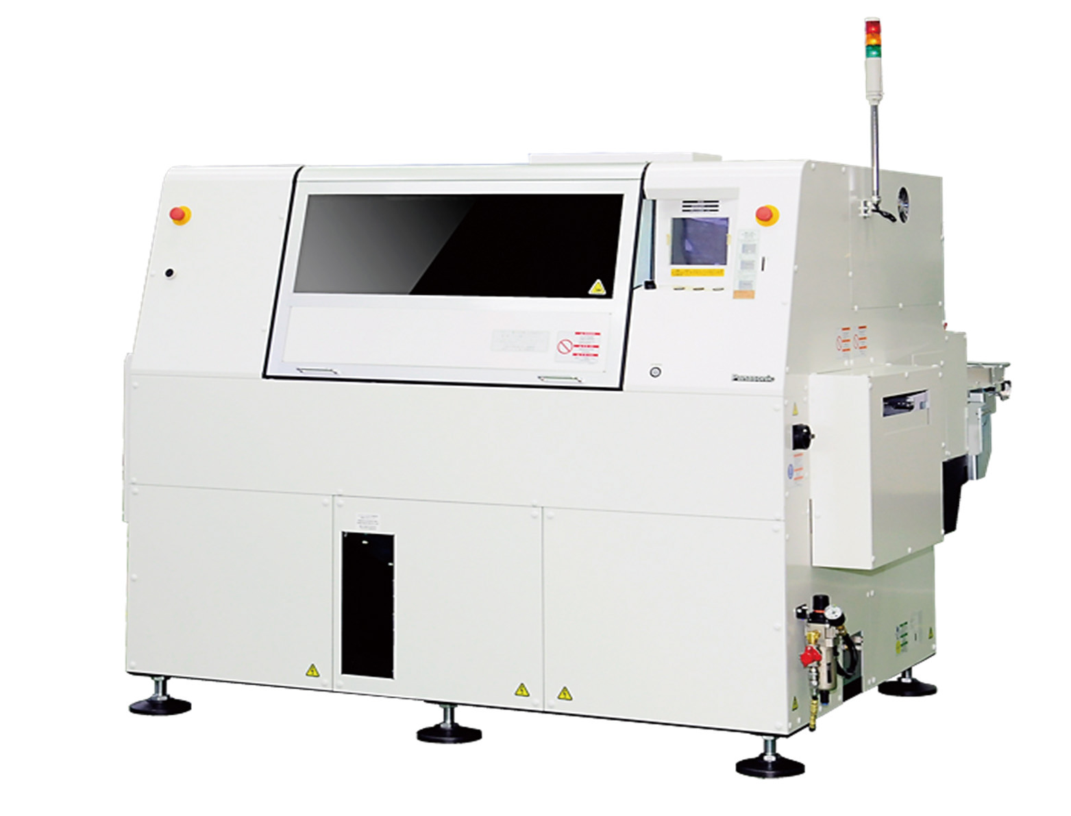 The RG 131 is the successor of the RHSG. By supporting 3/4 pitches, expanding the range of board sizes and increasing component insertion rate, this high-density radial component insertion machine increases productivity. High speed insertion at a rate of between 0.25s and 0.6s per component can be achieved, even for large-size components with 3-pitch (2.5mm/5.0mm/7.5mm) or 4-pitch (2.5mm/5.0mm/7.5mm/10.0mm) configurations. A comprehensive self-correction function ensures high reliability. With large numbers of component supply and dual-partitioned component supply units, long-term operation can be obtained. A total of up to 80 types of components can be mounted. With large numbers of component supply and dual-partitioned component supply units, long-term operation can be achieved easily with the RG131. A total of up to 80 types of components can be mounted, with up to 32 (16 + 16) types of large components. The two separate component supply units enable components to be exchanged and replenished during operation. Panasonic offers also the RG131-S platform version with smaller footprint. Higher productivity expanding board size range and increasing component input.